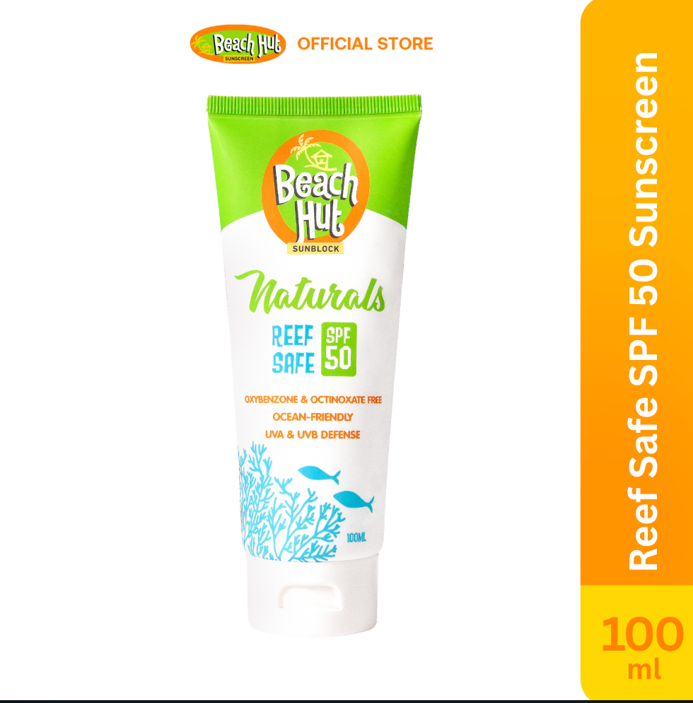 Beach Hut Naturals Reef Safe SPF50 100ml Lotion Sunscreen ensures that it complies with the stringent standards of being a REEF-SAFE Sunscreen and is compliant with the Hawaii Reef Bill. Made with 100% Natural Ingredients, it is ULTRA SAFE for our coral reef, as well as other marine life. Our Reef Safe sunscreen does not contain Oxybenzone and Octinoxate, which are the two harmful chemicals that contribute to coral bleaching and the endangerment of our marine life.